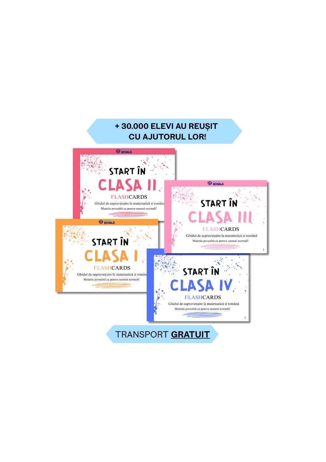 Cu Pachetul Start în Școală – Clasele I–IV, copilul tău învață pas cu pas, în ritmul lui, cu încredere și bucurie. Materialele sunt concepute pentru a face tranziția între ani cât mai lină și eficientă – fie că este în timpul anului școlar, în vacanță sau înainte de teste importante.
